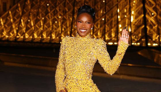 Doechii’s dress was an entire moment. The structured, floor-sweeping ballgown was drenched in shimmering gold embellishments, making her shine like a human golden statue in front of the Louvre’s iconic glass pyramid.