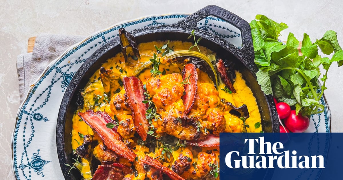 This recipe, adapted from one in my cookbook, is a very elaborate way to serve humble cauliflower cheese. The whole plant, including the leaves and core, is seasoned with nutmeg and roasted, and it’s then dressed with a satisfying layer of rich cheese sauce and grilled until charred and bubbling. Choose a cauliflower with plenty of leaves, because they go deliciously crisp when roasted. Continue reading…